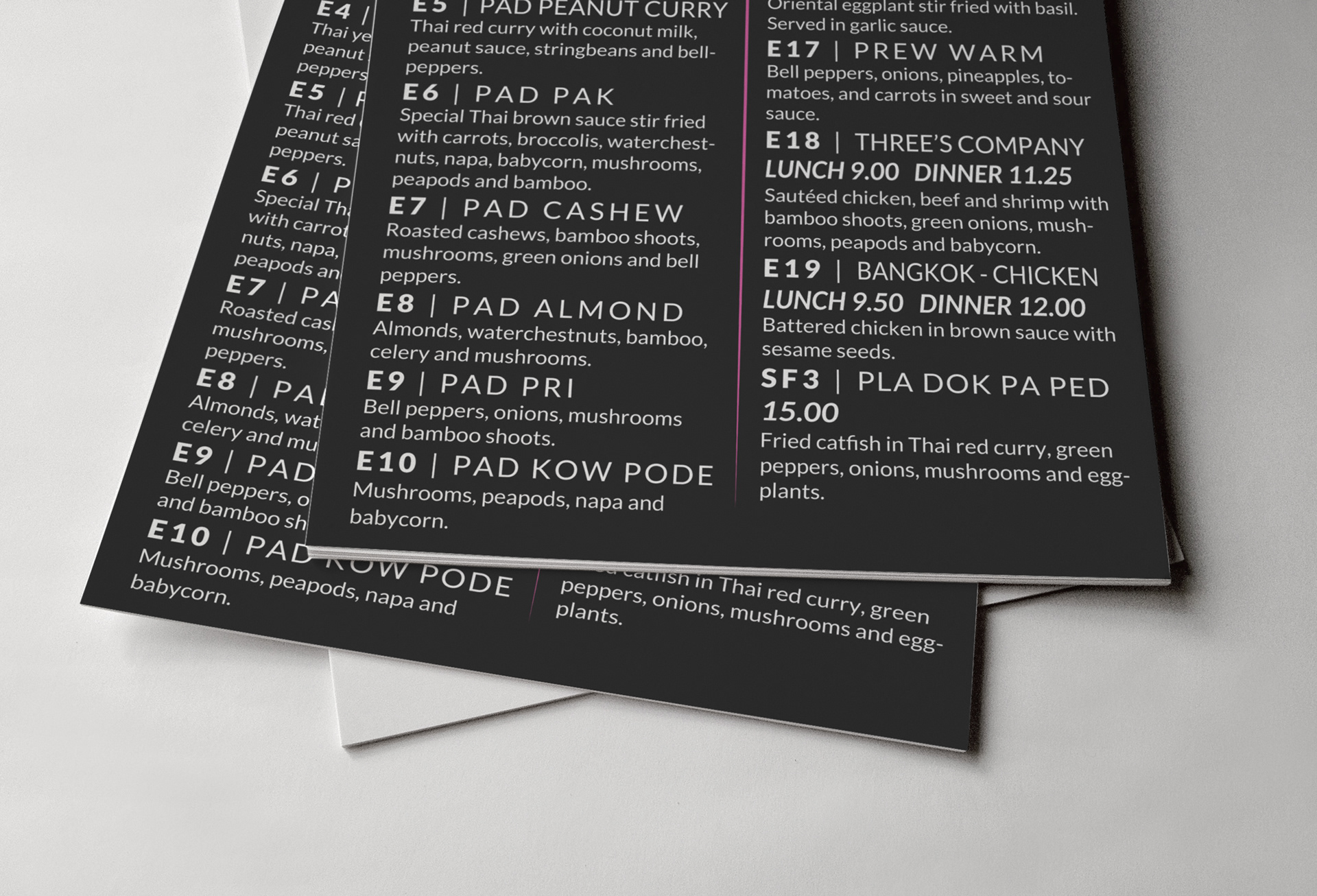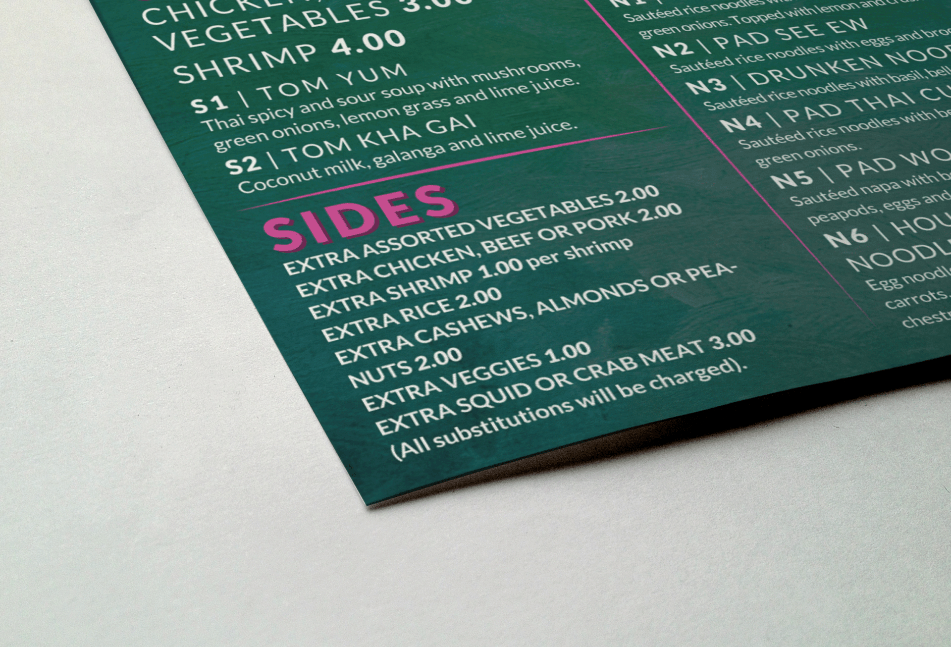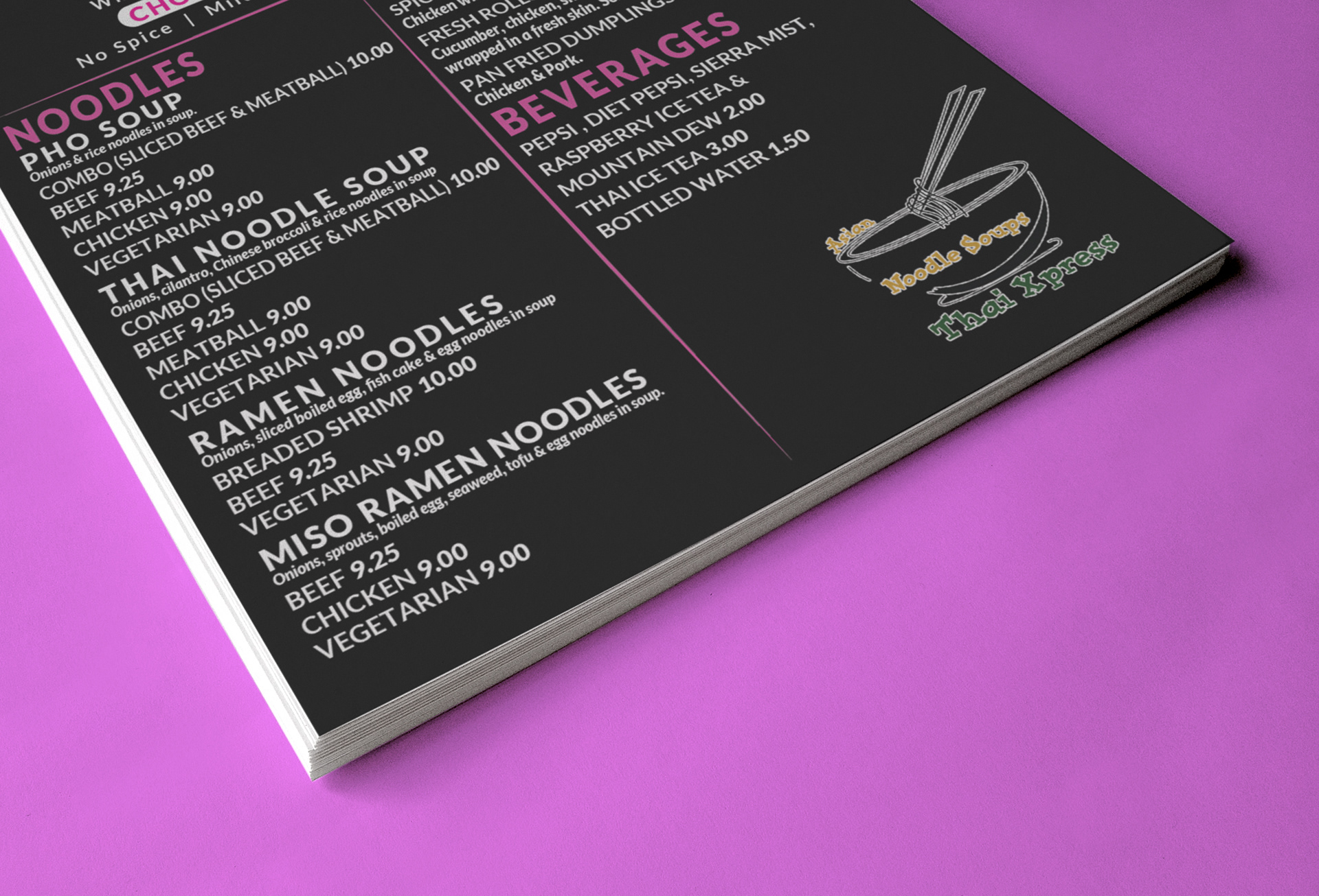 Animated food graphic digital menu for Thai Express restaurant in Michigan. Includes static vertical digital menus